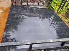 В завершении устанавливаем цветник, наполняем его каменной крошкой. Покрываем надписи на граните акриловой краской, которая сделает текст заметным во время дождя. Перед сдачей объекта клиенту проводим на участке влажную уборку. На последних фотографиях видно, что благодаря наземному покрытию место захоронения преобразилось до неузнаваемости.